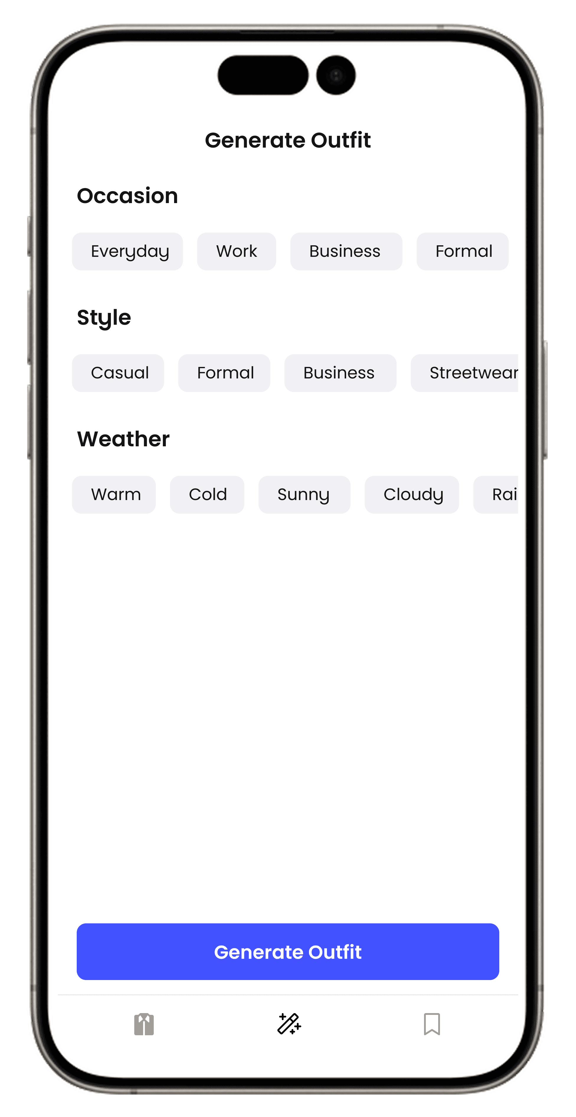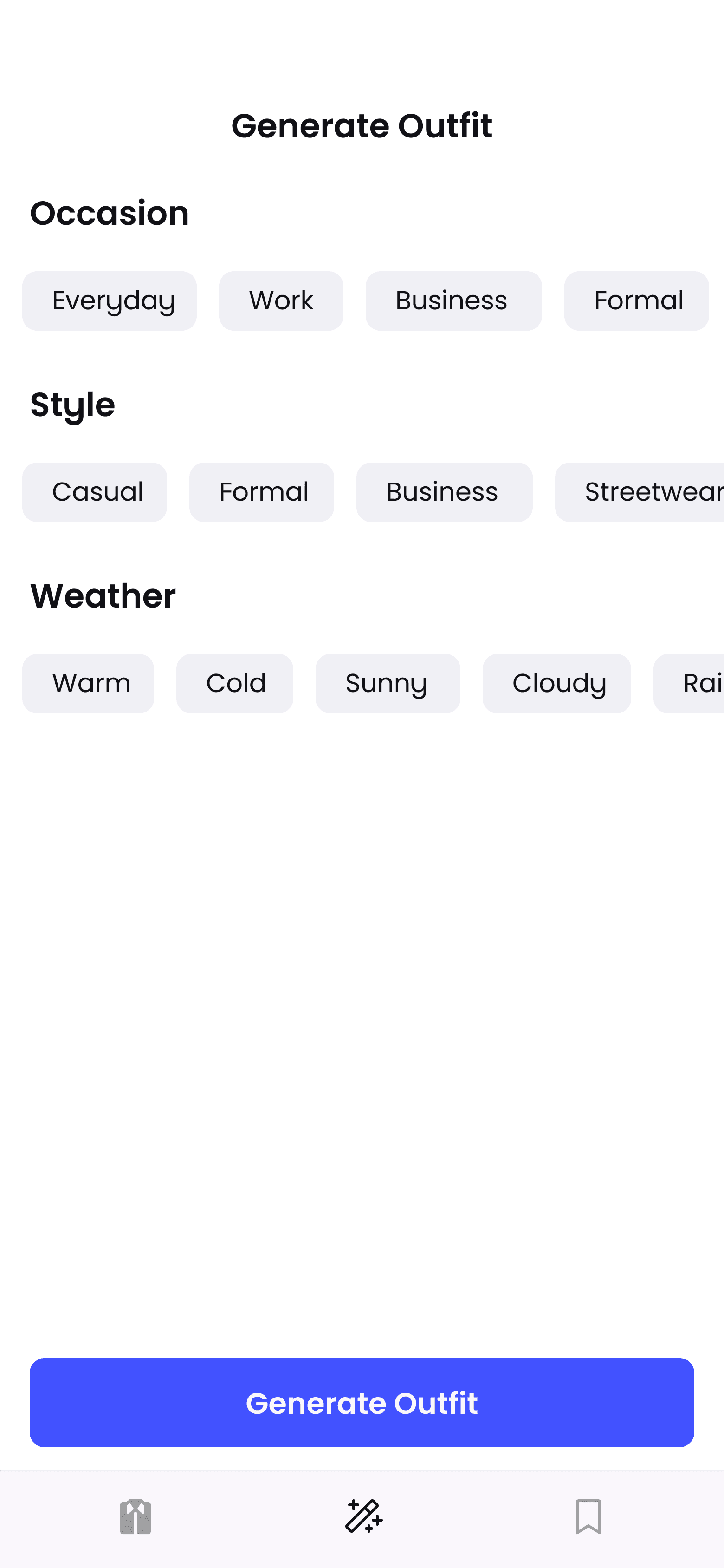 Stop overthinking what to wear. OutfitAI builds combinations that match your style, occasion, and the weather.